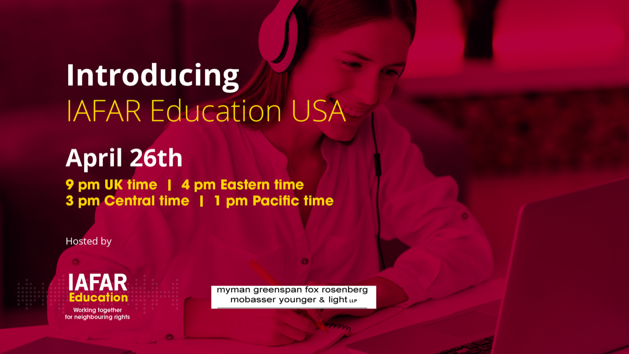 Do you know what Neighbouring Rights are? Whether you’ve been in the industry for years or you’re an up and coming artist, few songwriters know and/or understand what neighbouring rights are, how to claim and collect them, and what they need to do to maximize these earnings. The first dedicated Neighbouring rights trade union, IAFAR (The International Association for Artists & Rightsholders), launches its sister company, IAFAR Education USA. IAFAR education is a designated education based charity, committed to Neighbouring rights education. This webinar is specifically for business managers, managers, lawyers, and accountants to help de mystify this burgeoning income stream.